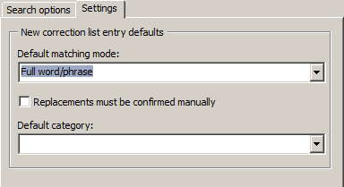 New correction list entry defaults: in this box, you can change default values for new entries that you add into your custom correction lists. By changing them here, you can edit correction lists faster.